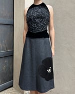 SIZE S/M | Sonia Rykiel dark grey wool skirt with flower and diamanté appliqué.