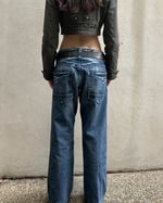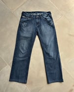 SIZE W 31" | Vintage dark wash straight leg jeans with bleah detail .