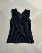 SIZE S | Japanese label black sheer striped top with metallic thread.