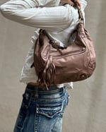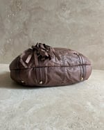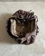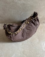 MOCHA BROWN | Japanese vintage genuine leather mini crescent bag with gold studded handle.