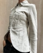 SIZE XS/S | Vintage Jill Stuart genuine suede leather pale greeny-grey jacket.