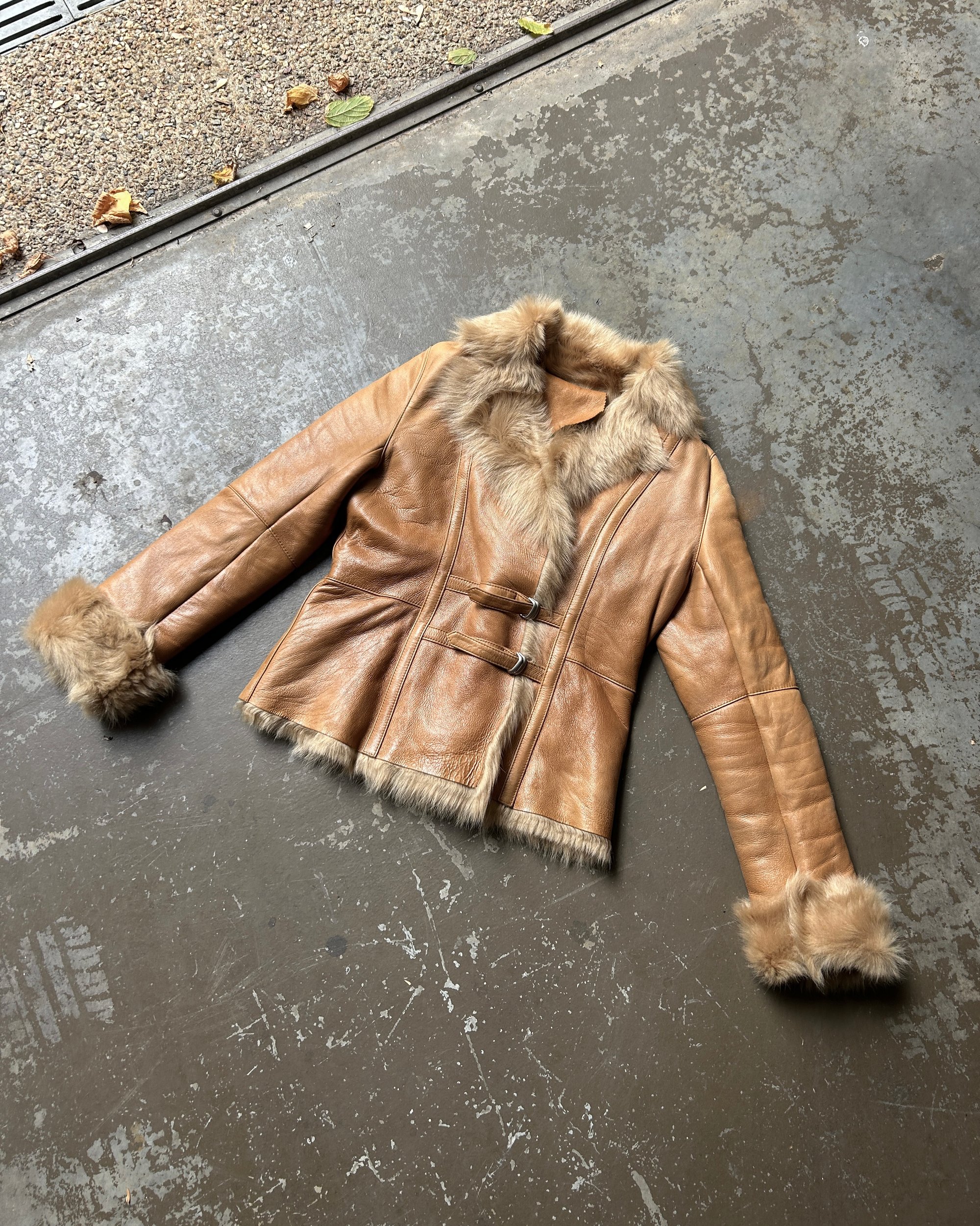 9/10 vintage condition, some light scuffing and creasing in the leather. The jacket has a slight "vintage" scent. Overall, it is in excellent condition.