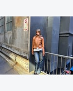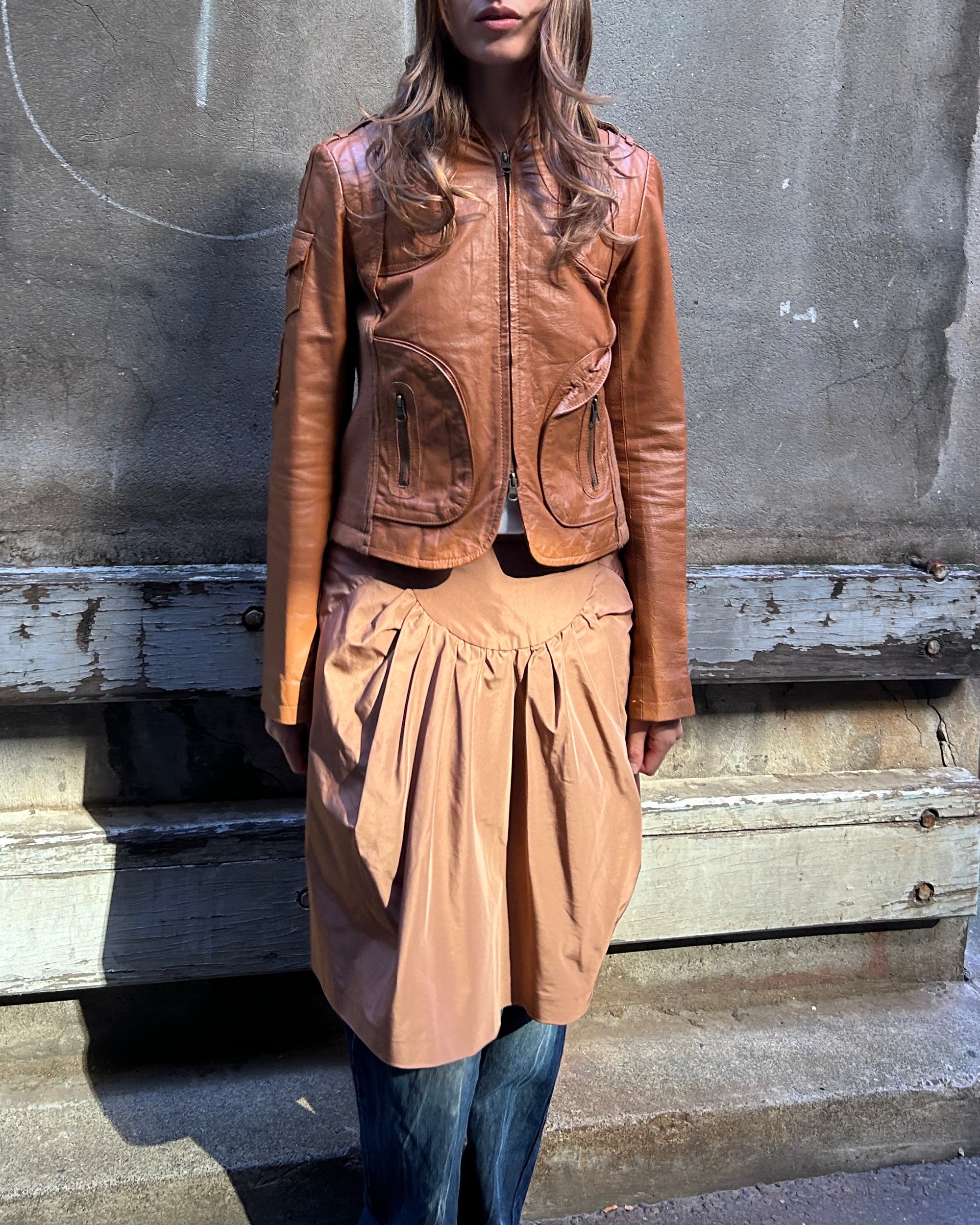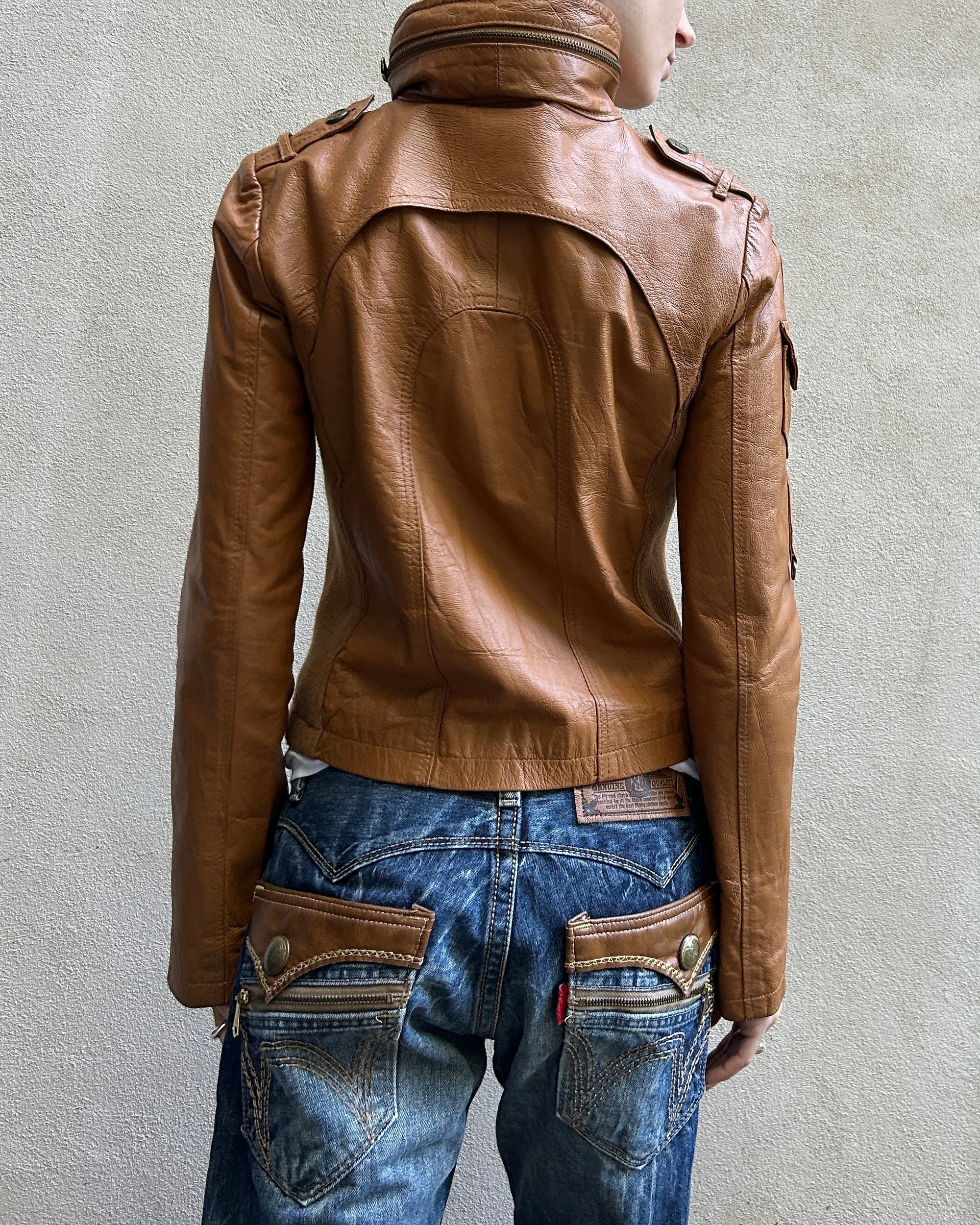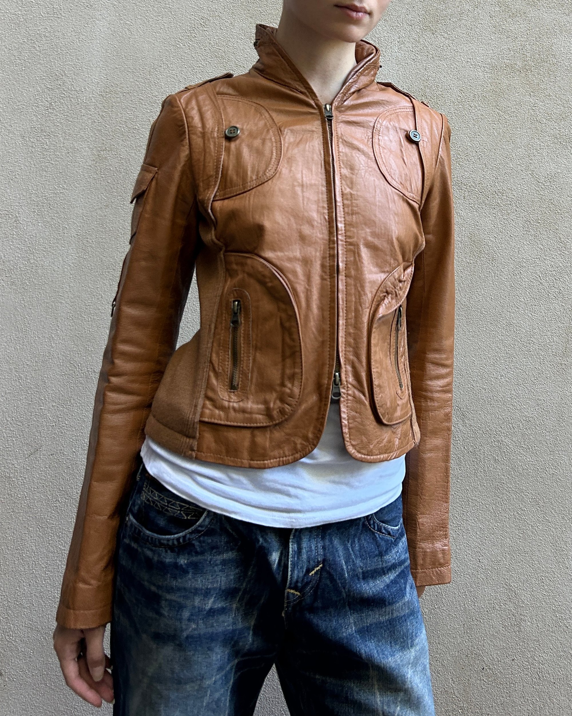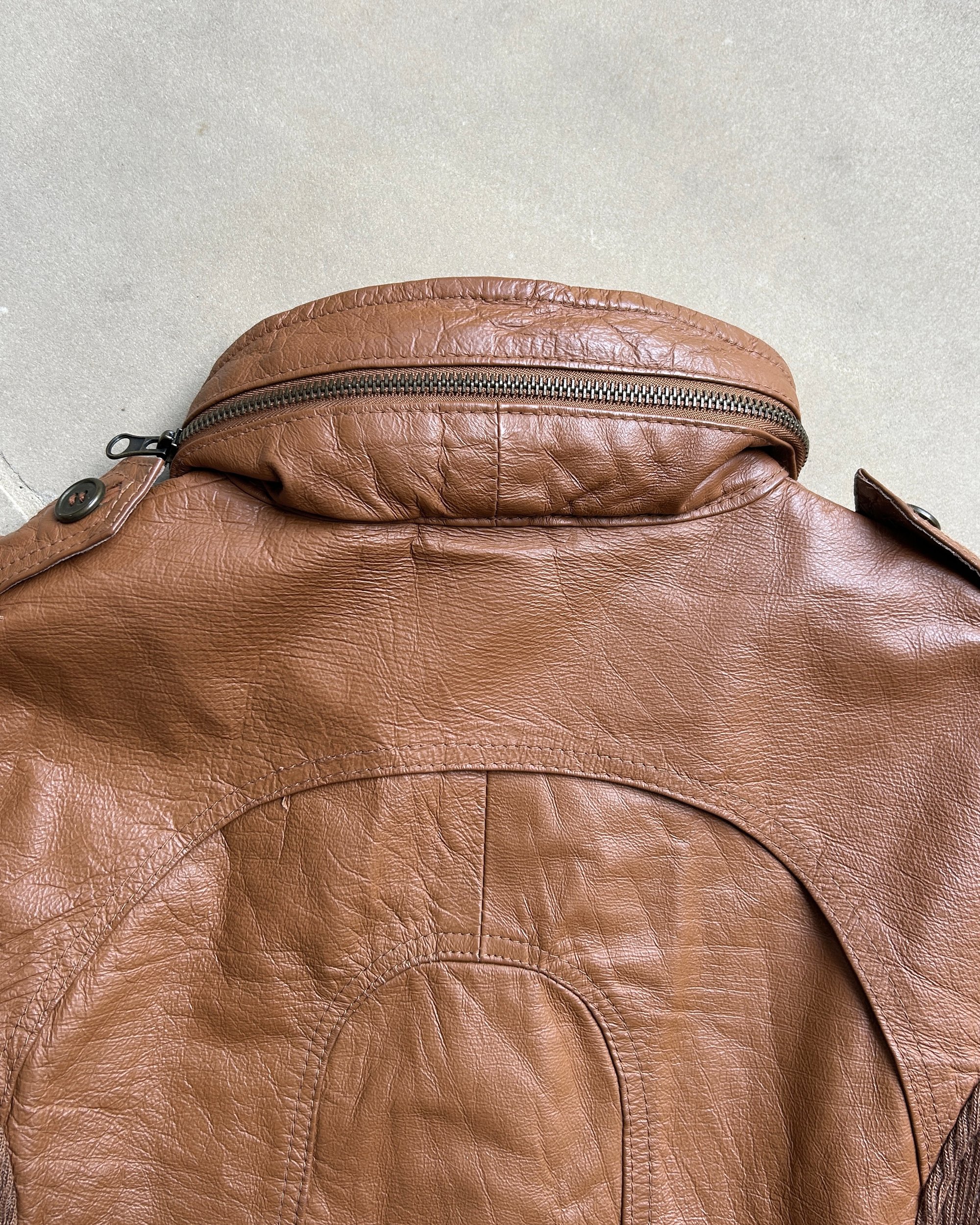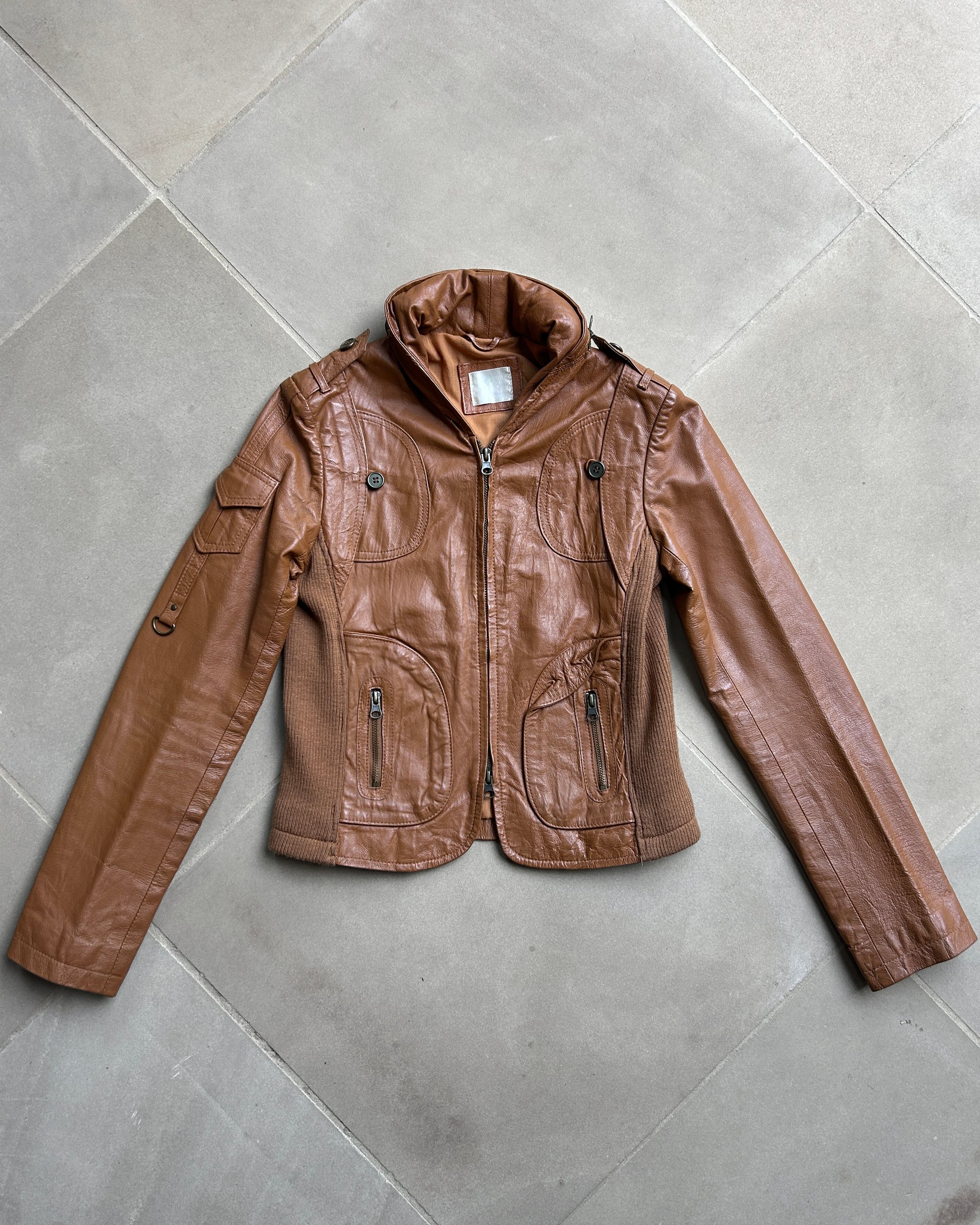 SIZE XS | Japanese brand genuine leather fitted jacket with knit side panels.